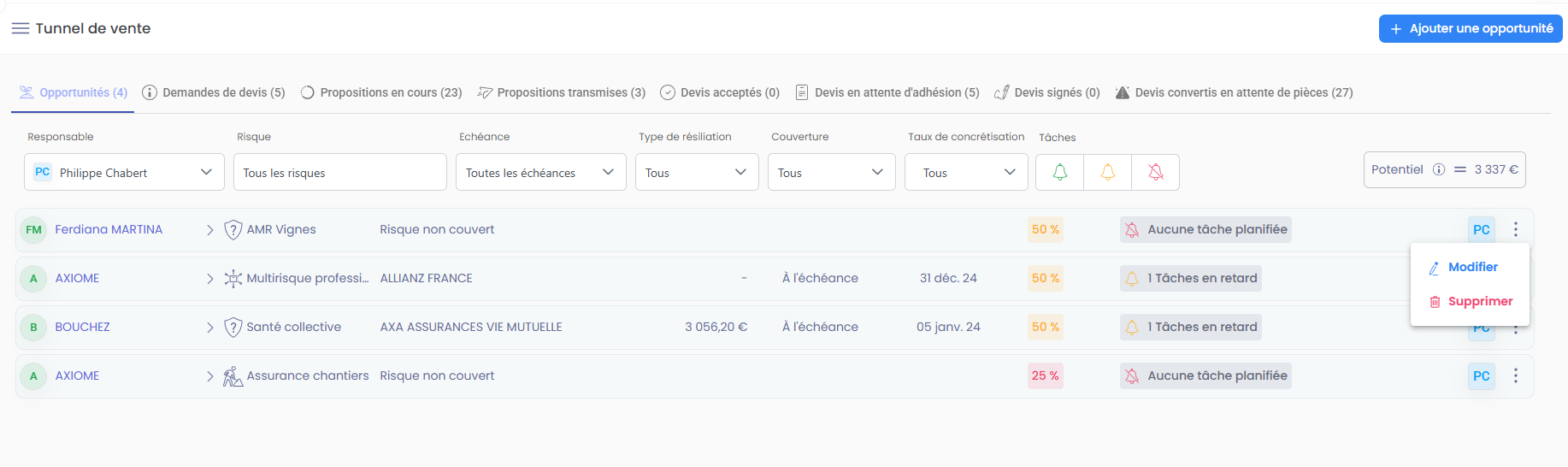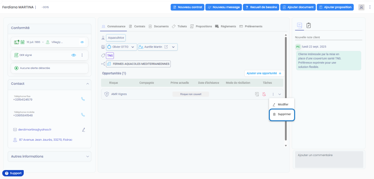 Toutes les opportunités ne se concrétisent pas. Certaines peuvent devenir obsolètes, être en doublon ou ne plus avoir d'intérêt commercial. Les supprimer permet de :