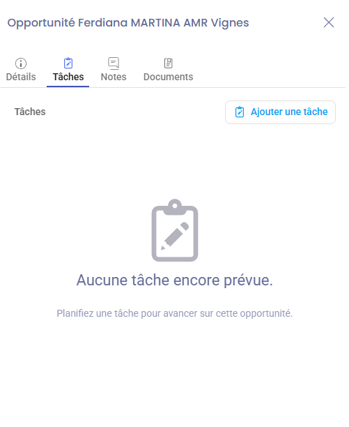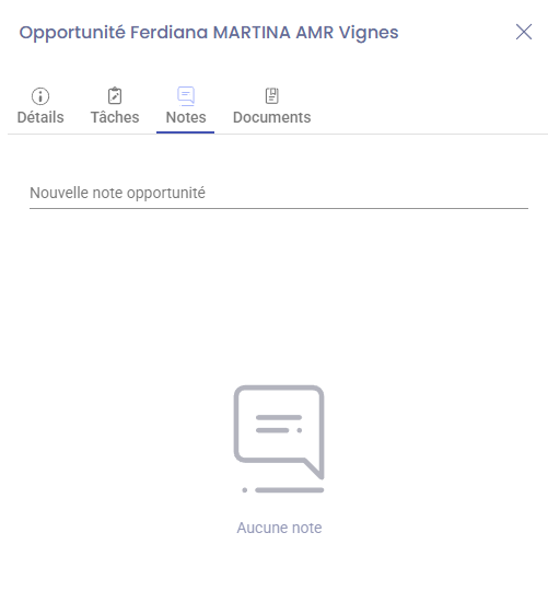 Une fenêtre latérale s’ouvre : il s’agit de la fiche opportunité.