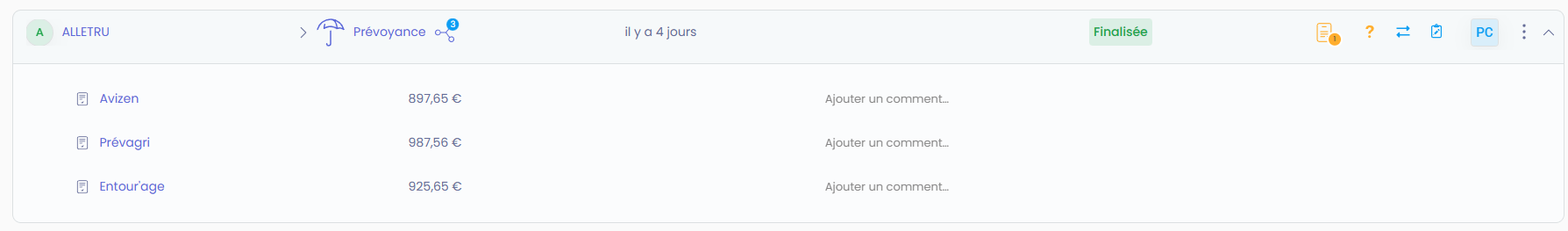 Le tunnel de vente d’ASSUR3D s’organise comme un parcours structuré de souscription. L’onglet Propositions en cours correspond à la phase active du suivi : vous y retrouvez tous les devis en cours d’élaboration, qu’ils soient à l’étape de sélection d’extranets ou déjà finalisés sous forme de PDF.
