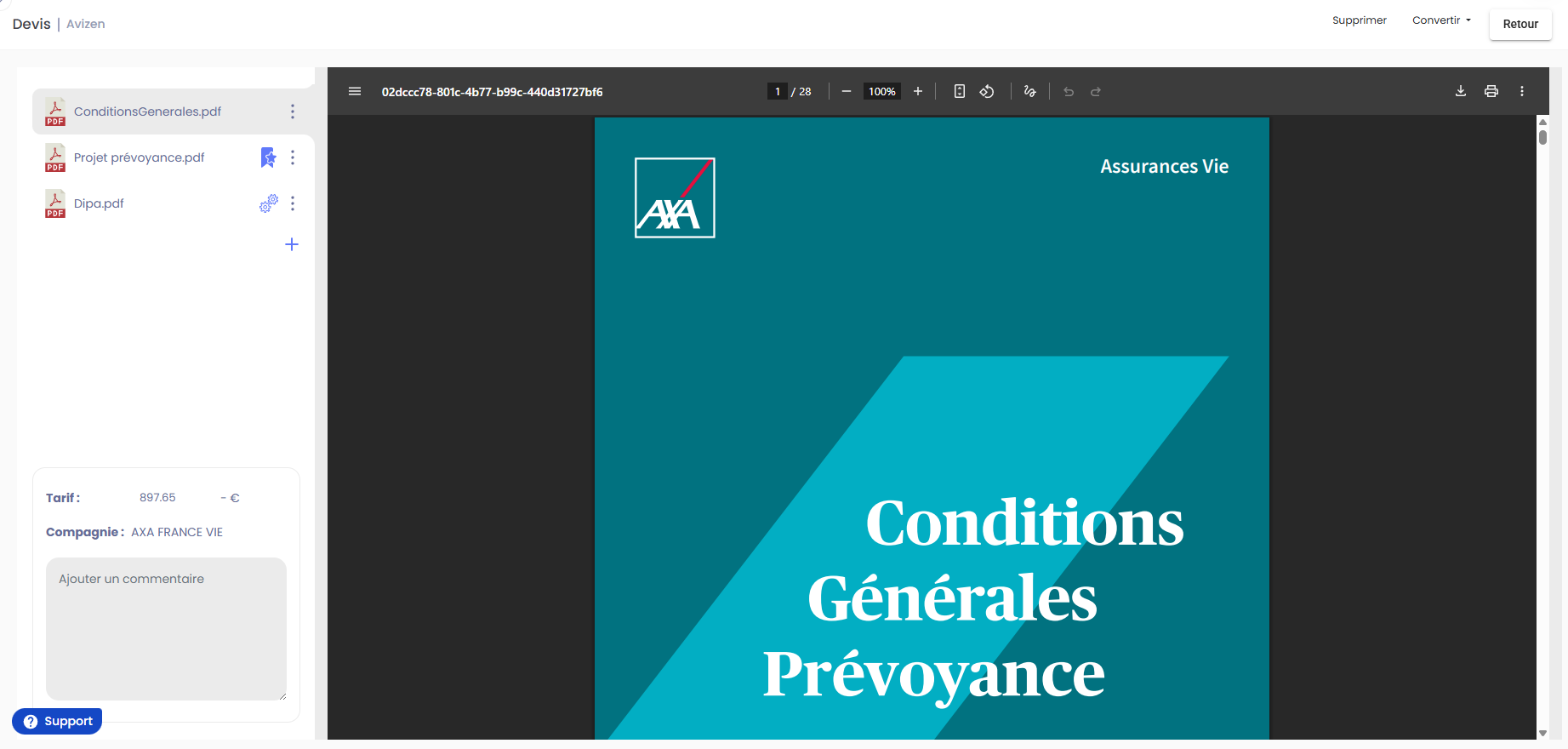 Le(s) document(s) PDF généré(s) : devis, conditions générales, DIPA…