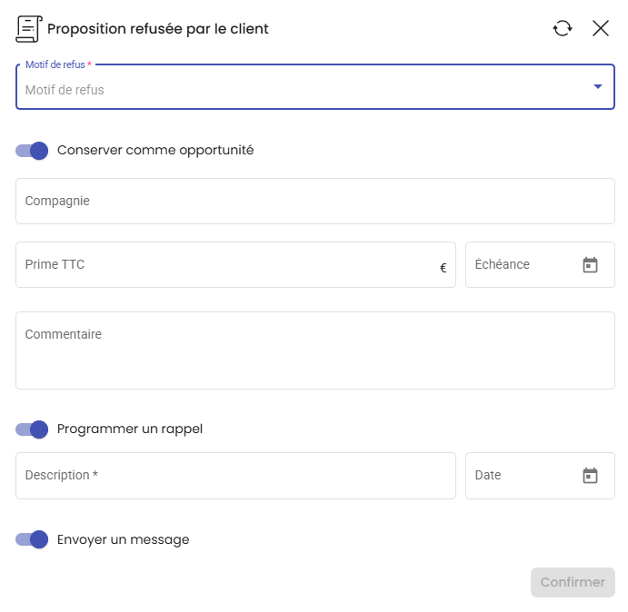 Si le client refuse la proposition, vous pouvez enregistrer ce retour de manière structurée :