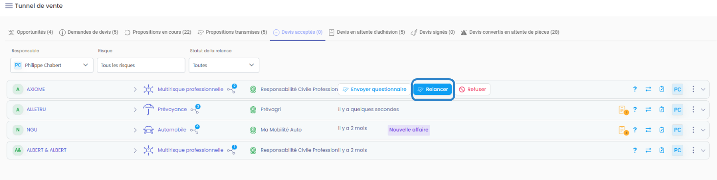 2. Relancer un devis accepté