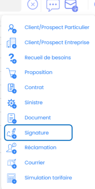 Depuis le bouton Action rapide, cliquez sur "Signature".