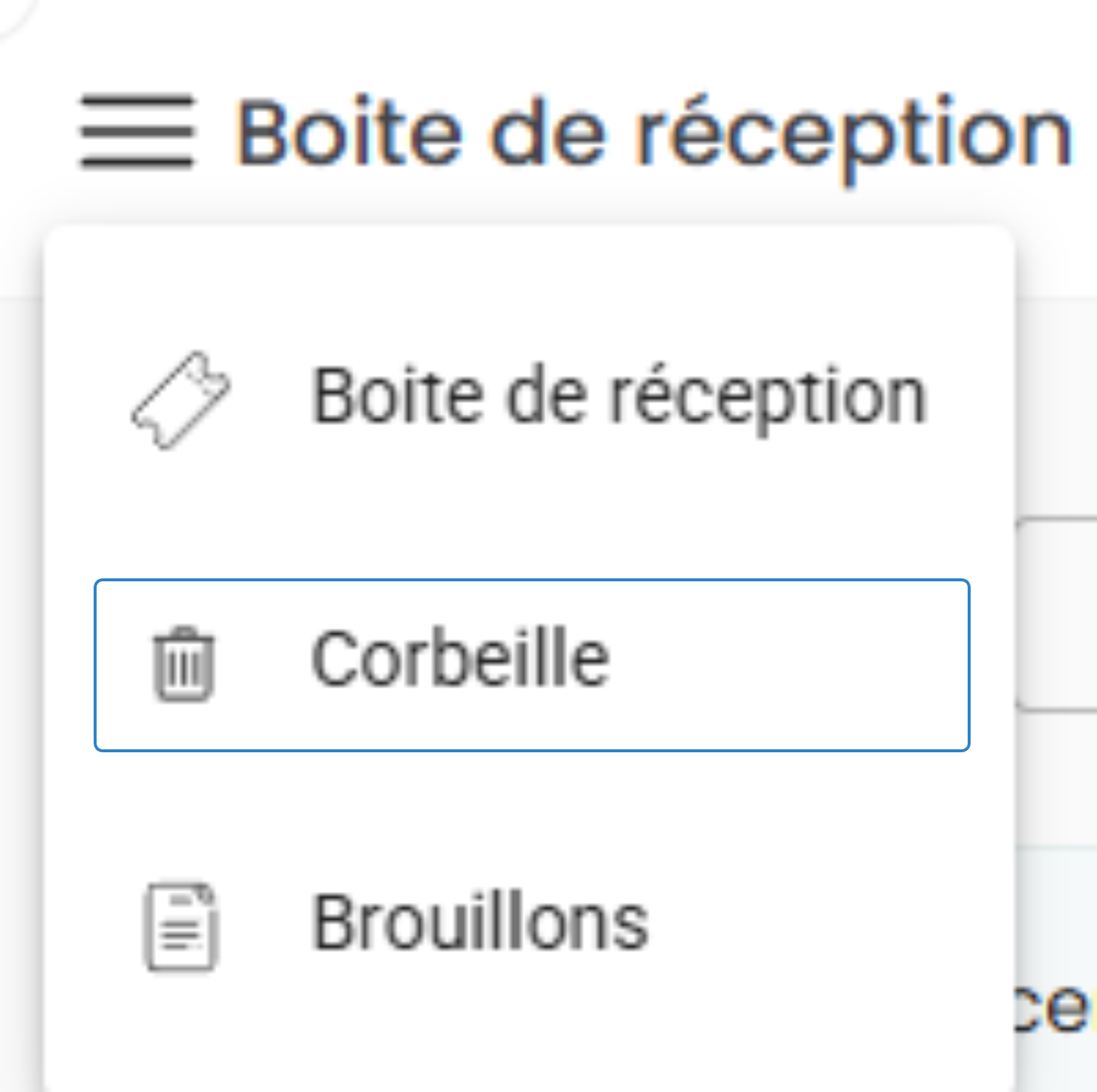 La corbeille est accessible via le menu en haut à gauche de la boîte de réception.