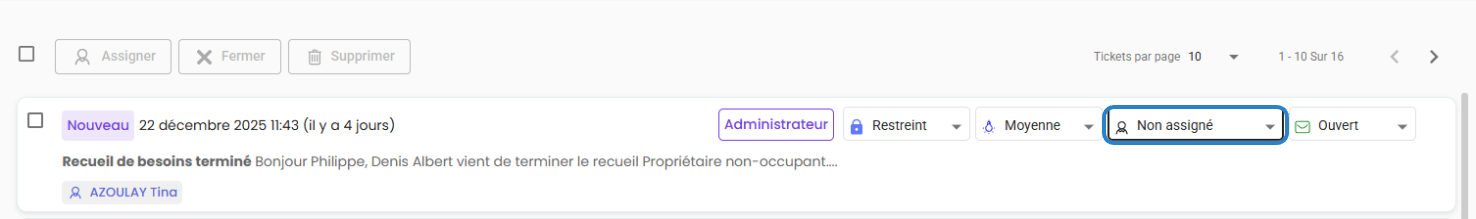 Une fois les tickets assignés, chaque utilisateur peut filtrer la liste pour ne voir que les tickets qui lui sont assignés.