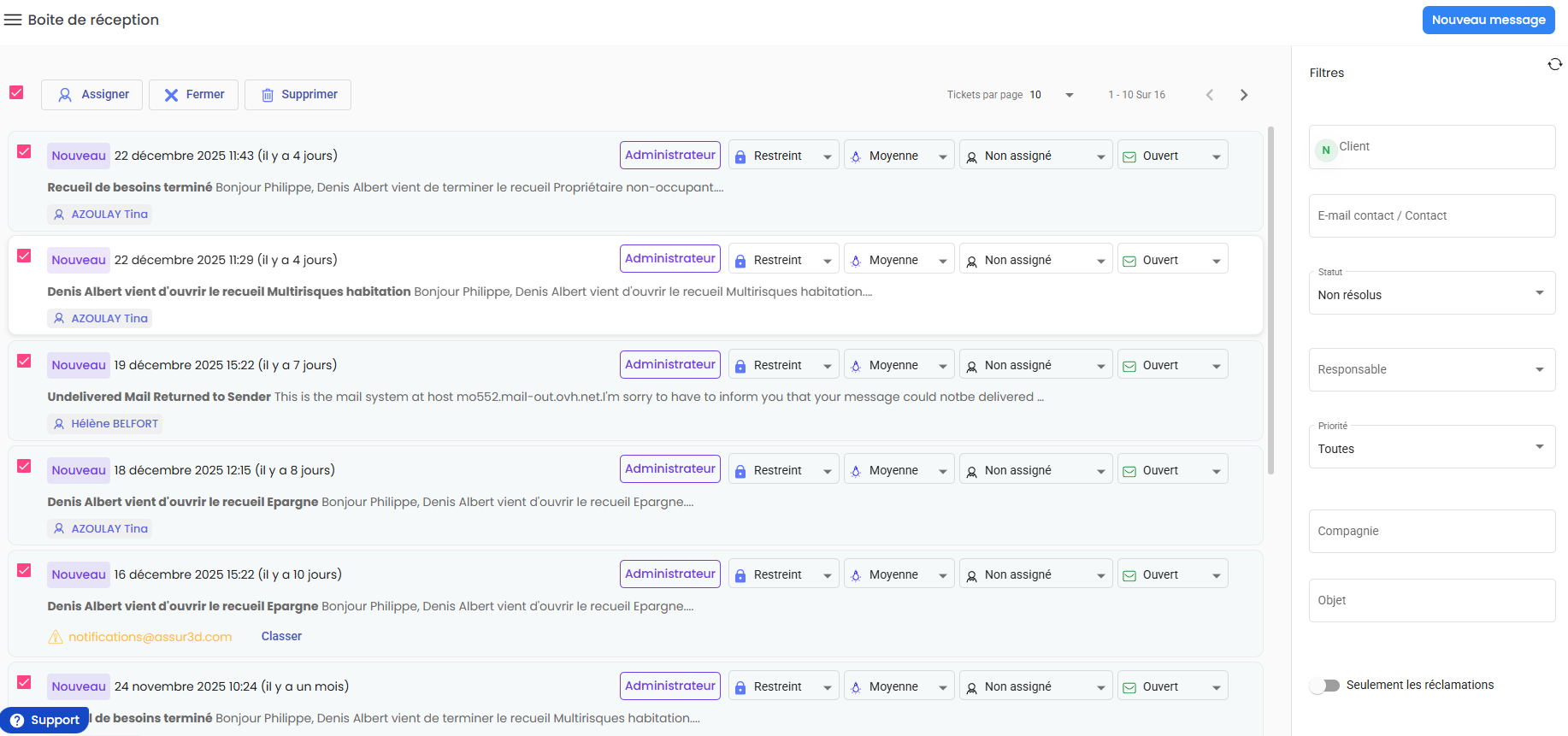 Assigner un ticket permet d’organiser clairement la gestion des e-mails dans une équipe. Chaque collaborateur sait ce qu’il doit traiter, et vous gagnez en clarté et en réactivité.
