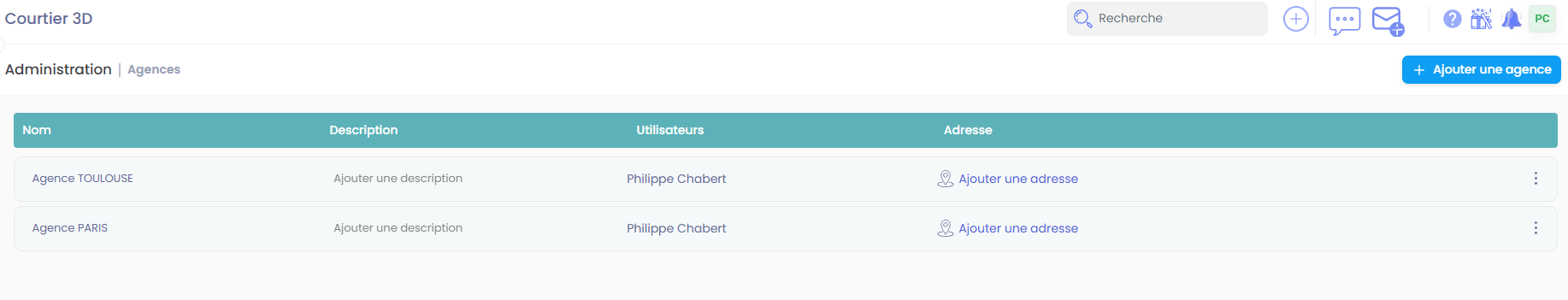 Appuyez sur le bouton "Ajouter une agence" en haut à droite.