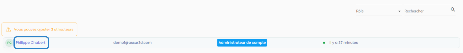 Cliquez sur un utilisateur pour ouvrir sa fiche.