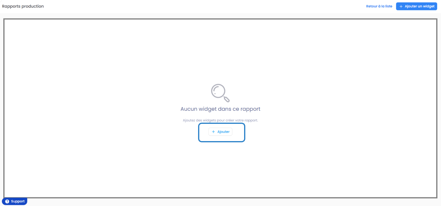 Un tableau vide s'affiche. Cliquez sur "+ Ajouter un widget" pour le personnaliser.