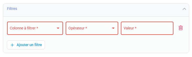 Comme pour les dimensions, les filtres utilisent les mêmes colonnes disponibles dans la source de données.