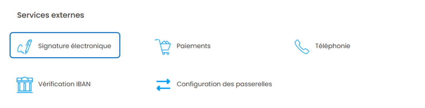 Sélectionnez Signature électronique dans la section Services externes.
