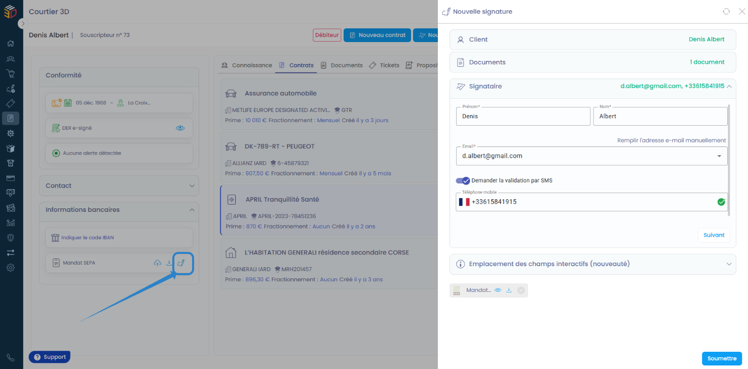Une fois signé, le mandat est automatiquement rattaché au dossier client.