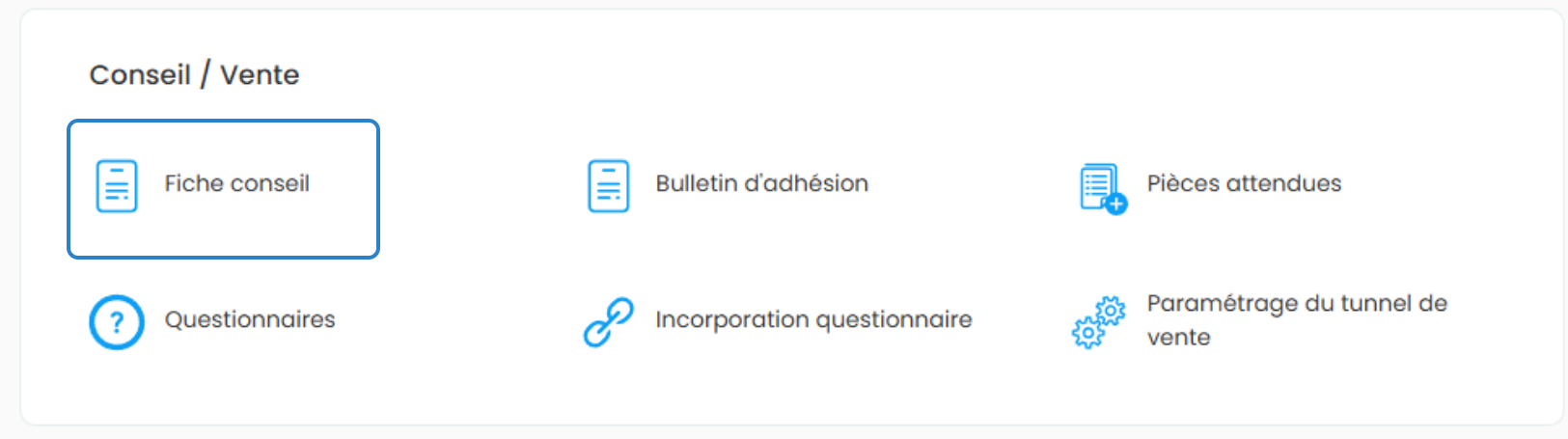 Dans la section dédiée au Conseil/Vente, cliquez sur Fiche de conseil.